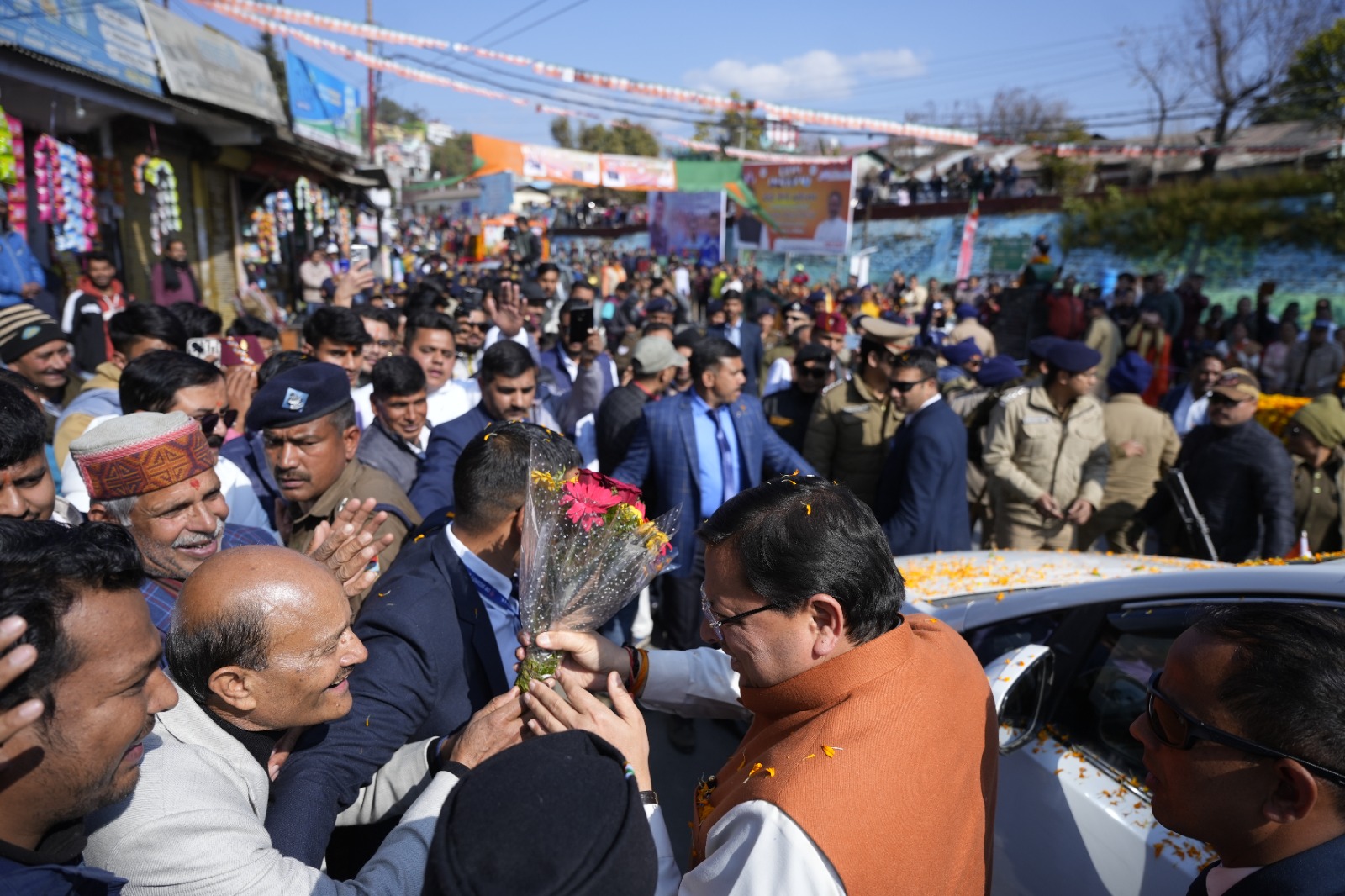 इससे पूर्व रोड शो के दौरान मुख्यमंत्री का स्थान स्थान पर स्वागत हुआ। न्यू बियर शिवा स्कूल के प्रबंधक एडवोकेट भुवन भाकुनी ने बुके देकर स्वागत किया। सामाजिक कार्यकर्ता जुगल किशोर पांडे ने मुख्यमंत्री को कुमाऊनी टोपी पहनाई और हाल ओढ़ाकर उनका स्वागत किया।