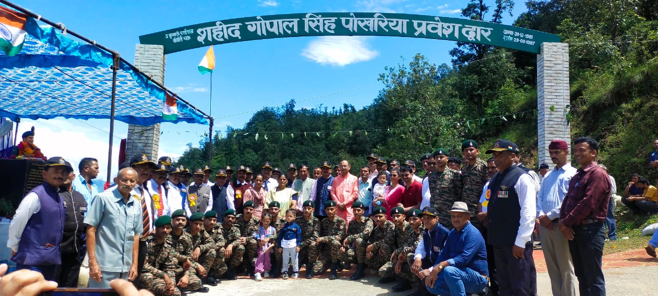 पिथौरागढ़। ख्वांकोट निवासी कीर्ति चक्र विजेता शहीद गोपाल सिंह पोखरिया की स्मृति में शहीद द्वार और स्मारक का निर्माण किया गया है। उनकी 27 वीं पुण्यतिथि पर शहीद द्वार और स्मारक का लोकार्पण किया गया। इस अवसर पर बलिदानी की मूर्ति पर श्रद्धा सुमन अर्पित किए गए और वीरांगना पुष्पा पोखरिया को शॉल ओढ़ाकर सम्मानित किया गया।