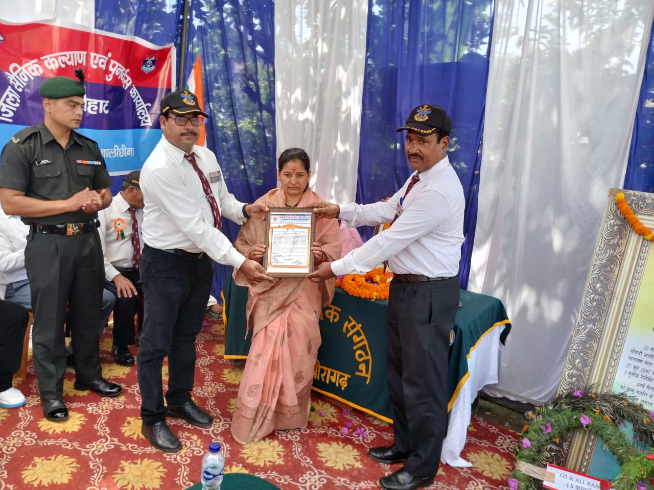 पिथौरागढ़ । देश के लिए सर्वोत्तम बलिदान देने वाले बलिदानी खुशाल सिंह सेना मेडल के बलिदान को आज एक नया मुकाम प्राप्त हुआ जब उनकी 16वीं पुण्यतिथि पर उनके पैतृक गांव पर स्थापित आईटीआई कॉलेज का नाम बलिदानी के नाम पर रखते हुए हर एक को जनमानस को ऐसे बलिदान को हमेशा याद रखे जाने की प्रेरणा के साथ स्थापित हुआ। 23 सितंबर 2009 को 13 राष्ट्रीय राइफल की घातक टीम के तौर पर उग्रवादियों के खिलाफ चलाए जा रहे ऑपरेशन पर नायक खुशाल सिंह द्वारा बेहद उत्कृष्ट वीरता का परिचय देते हुए देश के लिए अपना सर्वोच्च बलिदान दिया था। उनकी वीरता पर मरणोपरांत *सेना मेडल* से भी सम्मानित किया गया था। आज पूर्व सैनिक संगठन द्वारा आयोजित श्रद्धांजलि कार्यक्रम पर विधिवत पूजन अर्चन के बाद बलिदानी को याद करते हुए श्रद्धा सुमन तथा पुष्प चक्र अर्पित किए गए भारत माता से जयकारो तथा बलिदानी के जय उद्घोष के साथ आईटीआई कॉलेज के नए नाम बलिदानी खुशहाल सिंह “सेना मेडल” राजकीय औद्योगिक प्रशिक्षण संस्थान किया गया जो हर एक जनमानस, परिवारजन तथा सैनिकों के लिए गर्व के पल बने। दशकों तक परिवार जनों द्वारा इस मांग को उठाया गया अंततः परिवार जनों द्वारा पूर्व सैनिक संगठन के सामने इस बात को रखा गया जिस पर संगठन द्वारा कार्य करते हुए आवश्यक वार्तालाप तथा पत्राचार को जारी रखा गया और उसका सुखद परिणाम आज बलिदानी के नाम पर औद्योगिक संस्थान को नाम मिला जिसके लिए पूर्व सैनिक संगठन द्वारा भी शासन प्रशासन को धन्यवाद ज्ञापित किया गया। आज बलिदानी की मां श्रीमती भागीरथी देवी तथा धर्म पत्नी वीरांगना जानकी देवी , पुत्र अग्निवीर हिमांशु सिंह द्वारा विधिवत पूजन अर्चन करते हुए कार्यक्रम का शुभारंभ किया गया। तत्पश्चात पूर्व सैनिक डीडीहाट मंडल के माध्यम से सूबेदार शेर सिंह, 5 कुमाऊं रेजीमेंट से नायब सूबेदार संतोष सिंह, पूर्व सैनिक संगठन पिथौरागढ़ के माध्यम से नायब सूबेदार हयात सिंह,तहसीलदार पिंकी आर्य तथा सैनिक कल्याण अधिकारी कर्नल भूपेंद्र सिंह धामी साहब द्वारा पुष्प चक्र अर्पित करते हुए बलिदानी को सलामी दी गई। अपनी बातों को रखते हुए तहसीलदार पिंकी आर्य जी तथा सैनिक कल्याण अधिकारी द्वारा कार्यक्रम को ऐतिहासिक बताया गया। पूर्व सैनिक संगठन के *बलिदानी सम्मान अभियान* को एक नया आयाम प्राप्त होने पर सभी पूर्व सैनिक खासे उत्साहित दिखे, जिस पर संगठन के सचिव रमेश मेहर साहब द्वारा कहा गया कि आज संगठन के प्रयास सफल होते दिखते हैं वह सम्मान जो सैनिकों को प्राप्त होना चाहिए था वह संगठन के प्रयासों से आज बहुत हद तक प्राप्त हो पा रहा है। पूर्व सैनिक संगठन द्वारा आज बलिदान की माता तथा धर्मपत्नी को साल तथा प्रशस्ति पत्र देते हुए सम्मानित किया गया वहीं संस्