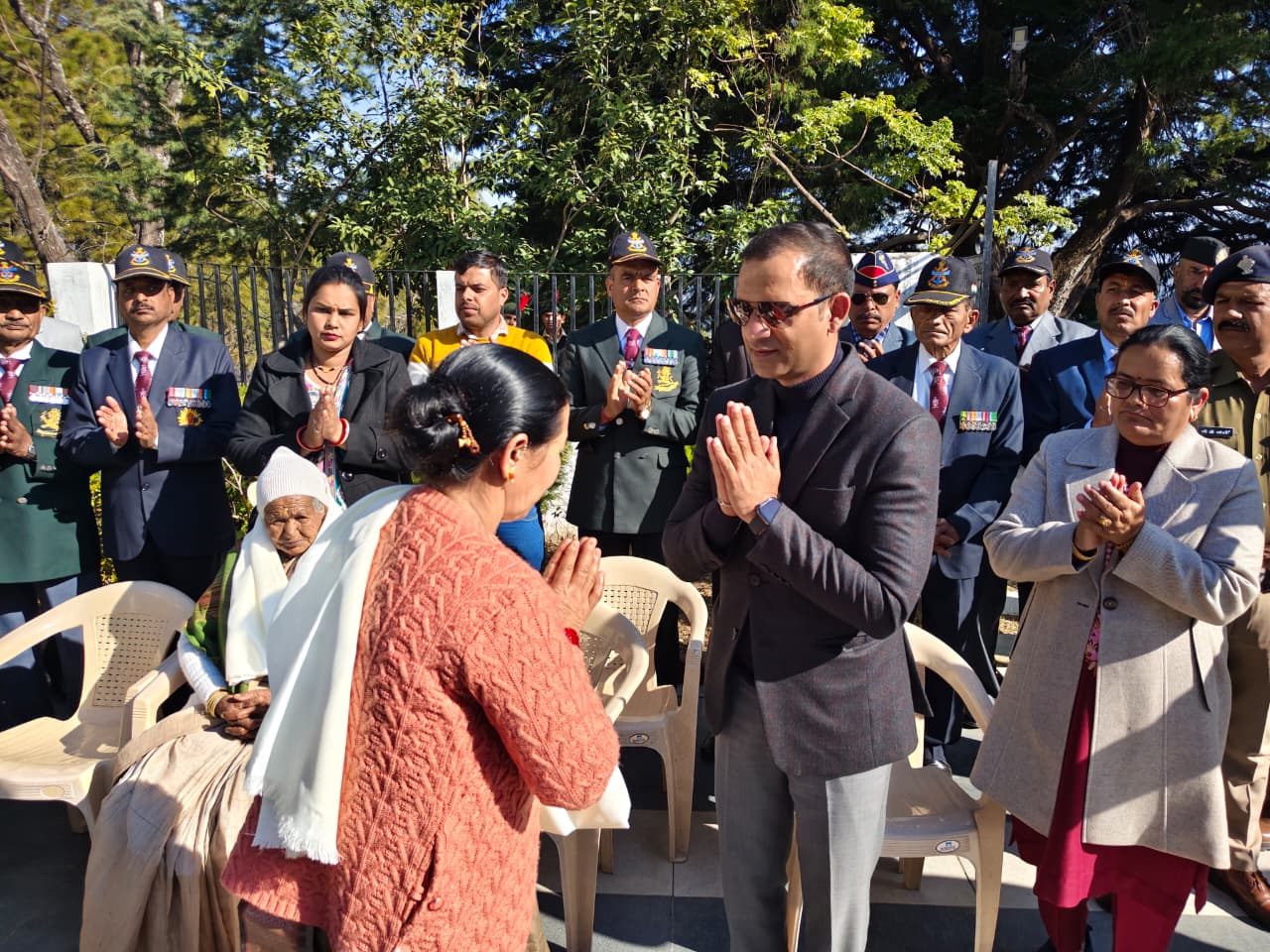 इस अवसर पर शहीद स्वर्गीय हवलदार दानसिंह की धर्मपत्नी श्रीमती सरस्वती देवी, लांस नायक दीवानी नाथ की धर्मपत्नी श्रीमती शांति देवी,लांस नायक रतन राम की पत्नी श्रीमती लछिमा देवी, एवं शहीद सिपाही नारायण बिष्ट की पुत्री श्रीमती विमला चंद्र को जिलाधिकारी ने शॉल ओढ़ाकर सम्मानित किया। इस अवसर पर सैनिक कल्याण अधिकारी अधिकारी सेवानिवृत्ति कर्नल करम सिंह बिष्ट ने सभी अतिथियों का स्वागत करते हुए विजय दिवस के संबंध में संक्षिप्त परिचय दिया उन्होंने कहा कि सन् 1971 में भारत-पाकिस्तान के मध्य युद्ध शुरू हुआ था और 13 दिनों तक चला। आधिकारिक तौर पर, युद्ध 16 दिसंबर को समाप्त हुआ और पाकिस्तान ने भारत के सामने आत्मसमर्पण कर दिया। तेरह दिनों तक चले युद्ध के परिणामस्वरूप पाकिस्तानी सेना ने पूरी तरह से आत्मसमर्पण कर दिया और बांग्लादेश का निर्माण हुआ। पाकिस्तान की सेना ने लगभग 93,000 सैनिकों के साथ भारत के सामने आत्मसमर्पण कर दिया। यह “अब तक की सबसे बड़ी जीत थी । सेना के इस अदम्य साहस और पराक्रम को देखते हुए हर वर्ष 16 दिसंबर को विजय दिवस के रूप में मनाया जाता है।