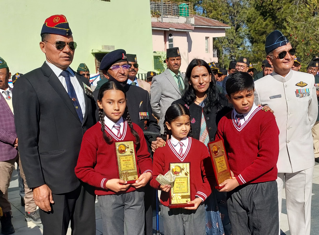 पिथौरागढ़। विजय दिवस के अवसर पर जिला मुख्यालय के शहीद स्मारक में आयोजित कार्यक्रम में स्व भावना गुलेरिया मेमोरियल स्कूल के बच्चों ने देशभक्ति गीत प्रस्तुत किए। बच्चों की भावपूर्ण प्रस्तुति पर उन्हें पुरस्कृत किया गया।