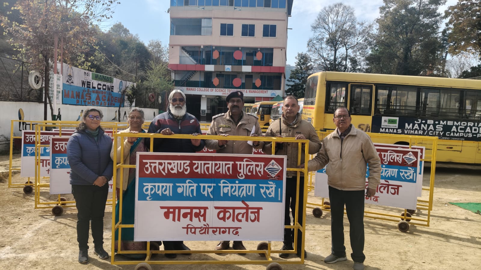 पिथौरागढ़। नव वर्ष की पूर्वसंध्या पर मानस कालेज पिथौरागढ़ द्वारा यातायात पुलिस को ट्रैफिक नियंत्रण बैरिकेड्स प्रदान किए गये।
