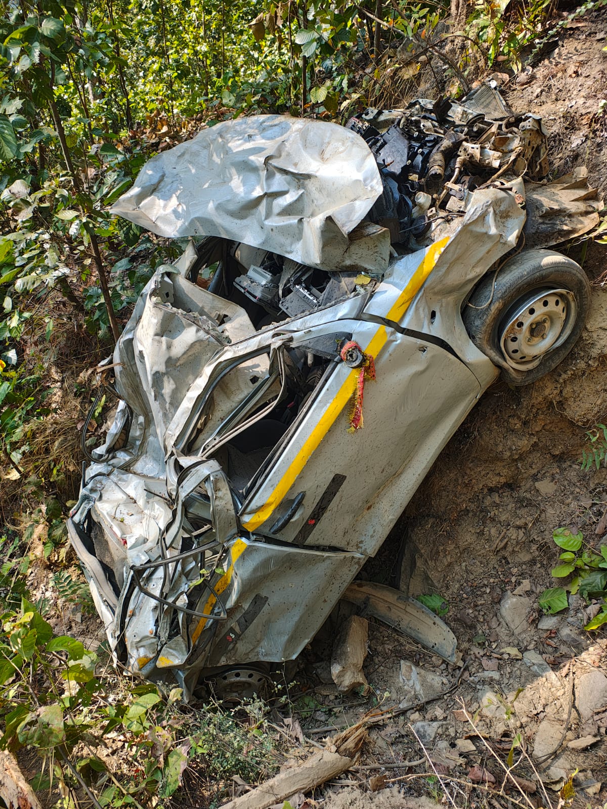 पिथौरागढ़। गंगोलीहाट तहसील मुख्यालय से लगभग 18 किलोमीटर दूर न्याय पंचायत पोखरी भेरंगपट्टी अंतर्गत ग्राम बोयल में स्विफ्ट कार संख्या यूके-05 टीए-5117 अचानक अनियंत्रित होकर 300 मीटर गहरी खाई में जा गिरी। इस दुर्घटना में दो लोगों की मौत हो गई। हादसे में कार के परखच्चे उड़ गए।मंगलवार को अपराह्न लगभग तीन बजे कार दुर्घटनाग्रस्त हुई। हादसे की सूचना मिलते ही प्रभारी निरीक्षक कैलाश चंद्र जोशी एवं एसआई नरेंद्र पाठक के नेतृत्व में पुलिस टीम मौके पर पहुंची। स्थानीय ग्रामीणों की मदद से खाई में गिरे वाहन से घायलों को बाहर निकाला गया। वाहन चालक भूपाल सिंह पुत्र शेर सिंह (35 वर्ष) निवासी ग्राम बोयल की मौके पर ही मौत हो गई थी। कार में सवार शिवनाथ पुत्र प्रेमनाथ (65 वर्ष) निवासी ग्राम बोयल घायल हालत में मिले। उन्हें 108 एम्बुलेंस की सहायता से सामुदायिक स्वास्थ्य केंद्र गंगोलीहाट भेजा गया। डॉक्टरों ने जांच करने के बाद उन्हें मृत घोषित कर दिया। पुलिस द्वारा मौके पर पंचायतनामा भरते हुए पोस्टमार्टम की कार्रवाई की जा रही है। मृतक भूपाल सिंह ने आठ माह पूर्व ही टैक्सी कार ली थी। प्रेमनाथ पूर्व फौजी थे। पुलिस दुर्घटना के कारणों की जांच कर रही है। गांव के दो लोगों की मौत से शोक की लहर है।