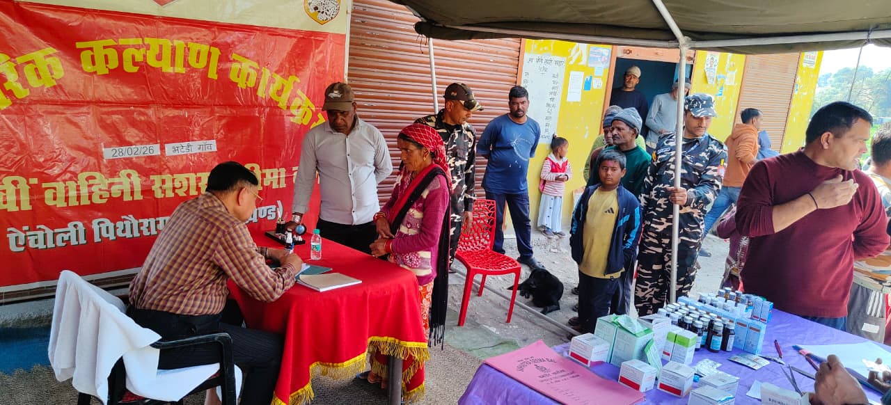 दिनांक 28/02/2026 को नागरिक कल्याण कार्यक्रम के तहत श्री आशीष कुमार, कमांडेंट, 55वीं वाहिनी सशस्त्र सीमा बल, पिथौरागढ़ के निर्देशन तथा डॉ. सौम्या हलदर, मुख्य चिकित्साधिकारी (एस.जी.) की देखरेख में सीमा चौकी झुलाघाट के कार्यक्षेत्र में स्थित ग्राम-भटेडी में नागरिक कल्याण के अनुक्रम में एक नि:शुल्क मानव चिकित्सा शिविर का सफल आयोजन किया गया। यह कार्यक्रम भारत सरकार के गृह मंत्रालय के निर्देशानुसार सीमावर्ती क्षेत्रों में नागरिक कल्याण, स्वास्थ्य सेवाओं की पहुंच सुनिश्चित करने एवं जनजागरूकता बढ़ाने के उद्देश्य से सशस्त्र सीमा बल द्वारा निरंतर किए जा रहे जनहितकारी प्रयासों की श्रृंखला का एक महत्वपूर्ण अंग रहा।