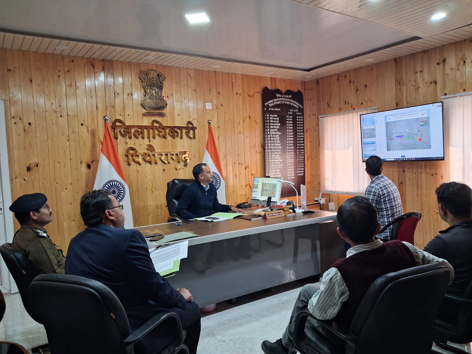 जनपद पिथौरागढ़ में राष्ट्रीय महत्त्व की सड़क एवं आधारभूत संरचना परियोजनाओं के प्रभावी क्रियान्वयन, यूटिलिटी शिफ्टिंग, भूमि अधिग्रहण तथा छारछुम सेतु के निर्माण कार्यों की समीक्षा हेतु आज कैंप कार्यालय में आशीष कुमार भटगाई की अध्यक्षता में एक महत्वपूर्ण बैठक आयोजित की गई। बैठक का उद्देश्य सीमांत क्षेत्र में संचालित विभिन्न परियोजनाओं को समयबद्ध, पारदर्शी एवं समन्वित रूप से पूर्ण कराना रहा।