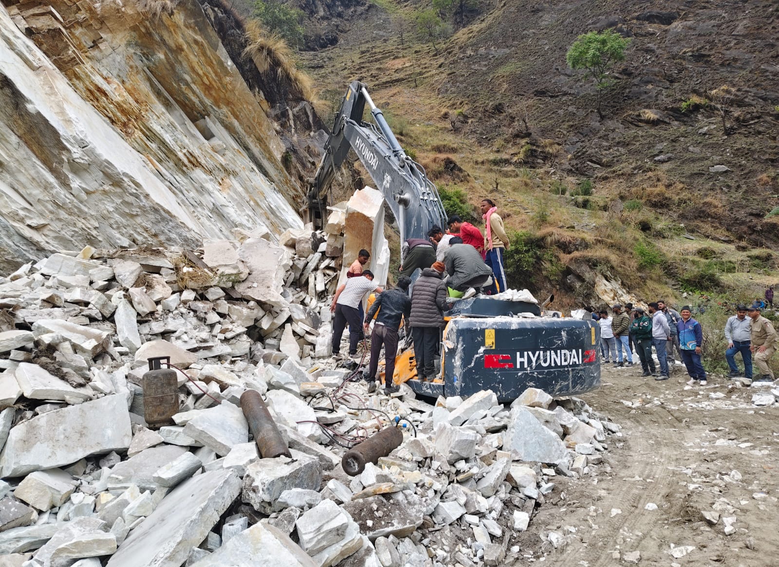 मांगती नाले के पास 28 वर्षीय चालक मनीष चुफाल चट्टान काटने के कार्य में जुटा था। इसी दौरान विशाल चट्टान टूट गई। भारी बोल्डर सड़क पर आ गिरे। चालक मनीष बोल्डरों के नीचे दब गया। चालक के मलबे में दबने से हड़कंप मच गया। लोगों ने इसकी सूचना पुलिस, ग्रिफ और तहसील प्रशासन को दी।