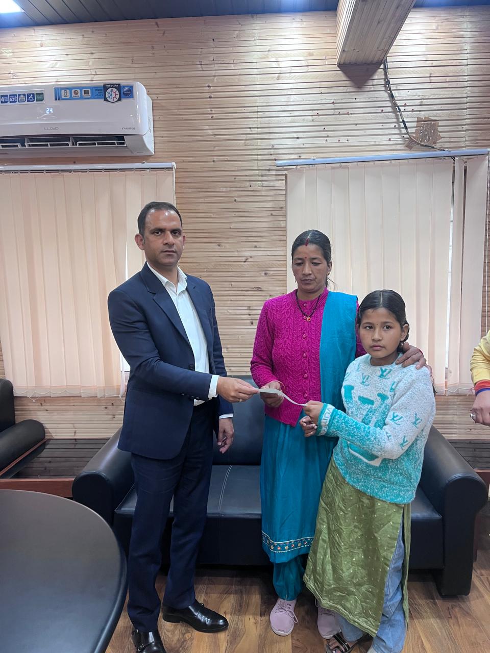 पिथौरागढ़ जनपद के धारचूला क्षेत्र अंतर्गत जुम्मा गांव में सड़क निर्माण कार्य के दौरान हुए दर्दनाक हादसे के बाद जिला प्रशासन ने मानवीय संवेदनशीलता का परिचय देते हुए पीड़ित परिवार को तत्काल राहत प्रदान की है। जिलाधिकारीआशीष भटगांई के निर्देश पर जिला रेड क्रॉस सोसाइटी के माध्यम से घायल मासूम बच्ची के परिवार को ₹10,000 की त्वरित आर्थिक सहायता उपलब्ध कराई गई।